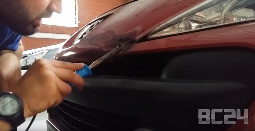 Ровняем бампер, чтобы расплавленный пластик от нашей пайки был идеально гладкий и ровный.