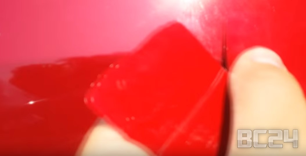 Царапину можно только зашкурить, закрасить не выйдет, так как она проявится на новом слое краски. Наносим минимальный слой эластичной шпаклевки.