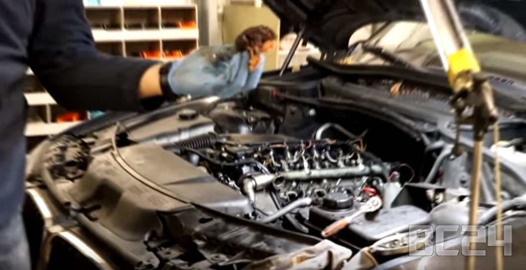 Это дизельный мотор и у нас 2 способа попасть в камеру сгорания — через форсунки (что осень долго и геморно) и через свечи накаливания. К последним тоже доступ не простой — нужно снимать впускной коллектор, но все же проще.