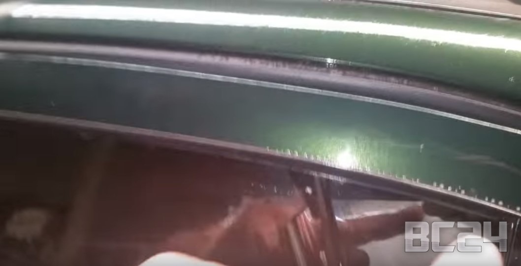 Аккуратно поднимаем стекло максимально вверх, чтобы и пленку затянуло выше и четким и резким движением отрезаем верх пленки по кантинку. В итоге мы отрежем 1-1,5 мм.