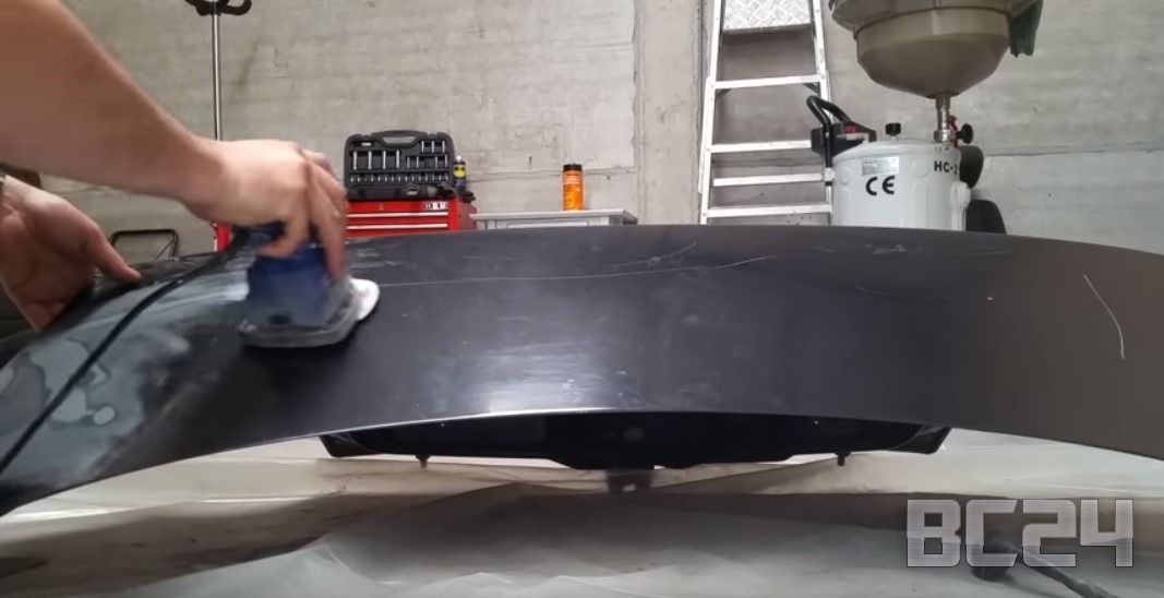 Для того, чтобы закрасить данную глубокую царапину на детали необходимо ее сначала зашкурить, до тех пор, пока у Вас не появится ровная и гладкая поверхность. Руками шкурить будет очень сложно, поэтому советую всем купить бюджетную шлифмашинку.