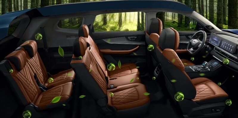 - Просторный салон. Chery Tiggo 8 Pro e+ — это семиместный кроссовер, который предлагает большой и комфортный салон.