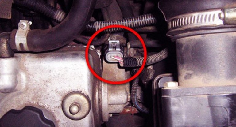 - Откройте моторный отсек и демонтируйте датчик. Для этого вам придется сначала снять дроссель, поскольку это значительно облегчит процедуру снятия контроллера. Чтобы сделать это, выкрутите три болта, один из которых фиксирует электроцепь. Затем устройство прокручивается в сторону дросселя, это позволит снять девайс. Сразу же проверьте состояние уплотнительной резинки и если есть необходимость (загрязнение, износ, повреждения и т.д.), то уплотнитель меняется. Нелишним будет произвести очистку воздушного клапана дросселя.