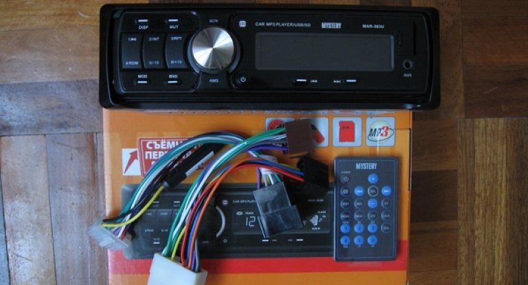 - Автомагнитола подключается к бортовой сети автомобиля. К соответствующим выходам на ней нужно подключить кабель питания, штекер, к которому подключены динамики, антенна. Если на руле вашего авто есть кнопки управления магнитолой, то их также надо подключить, если это позволяет устройство. Кстати, если в автомобиле не установлены динамики, то их сначала следует вмонтировать в двери и заднюю полку, а затем уложить проводку под облицовкой салона, которая будет идти к магнитоле.