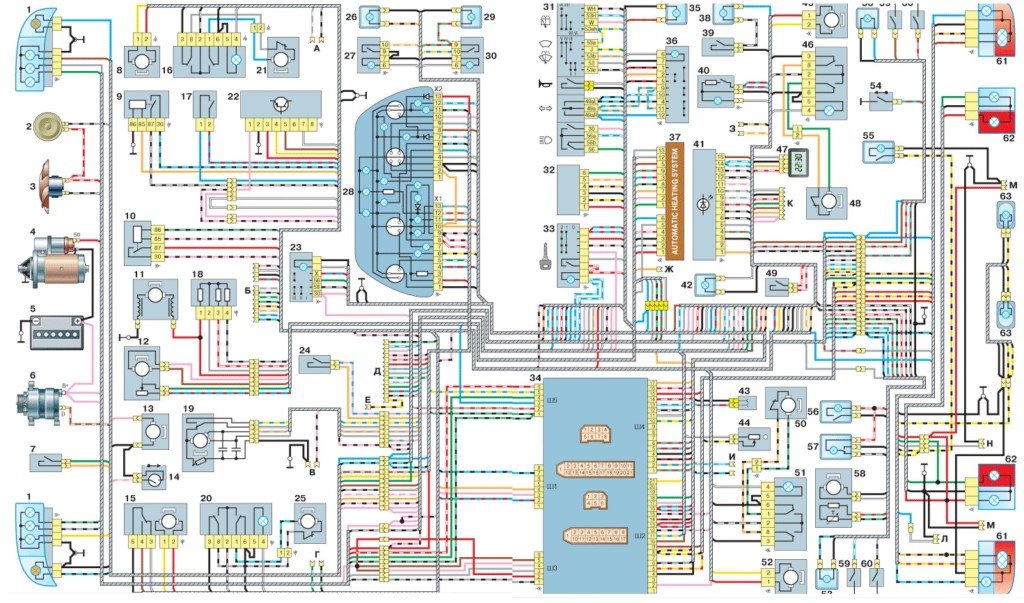 Схема электропроводки ВАЗ 2112 включает в себя несколько основных компонентов: