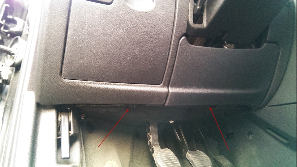 - открыть водительскую дверь и обнаружить над блоком педали часть панели, подлежащую демонтажу;