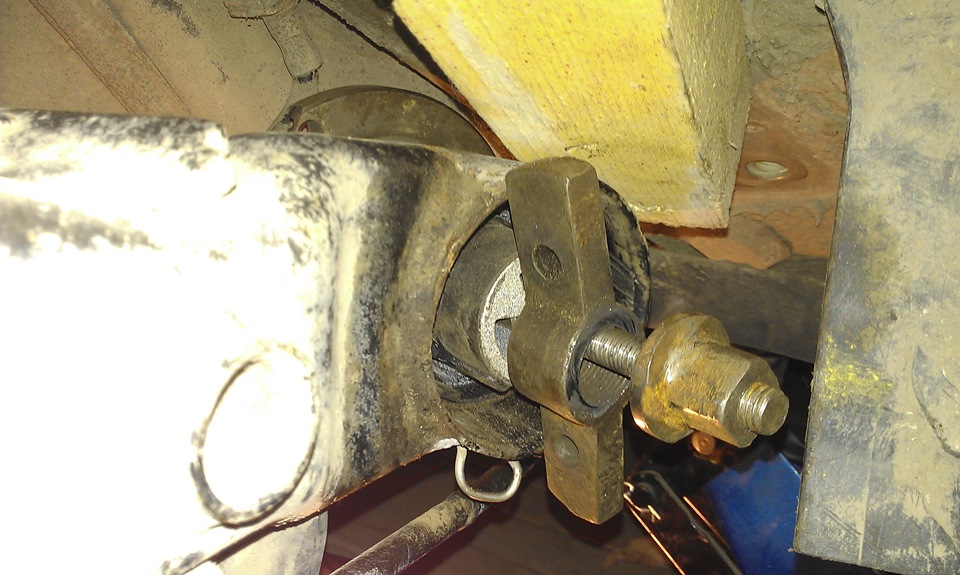 - Демонтировать винт, которым соединен кронштейн и рычаг.