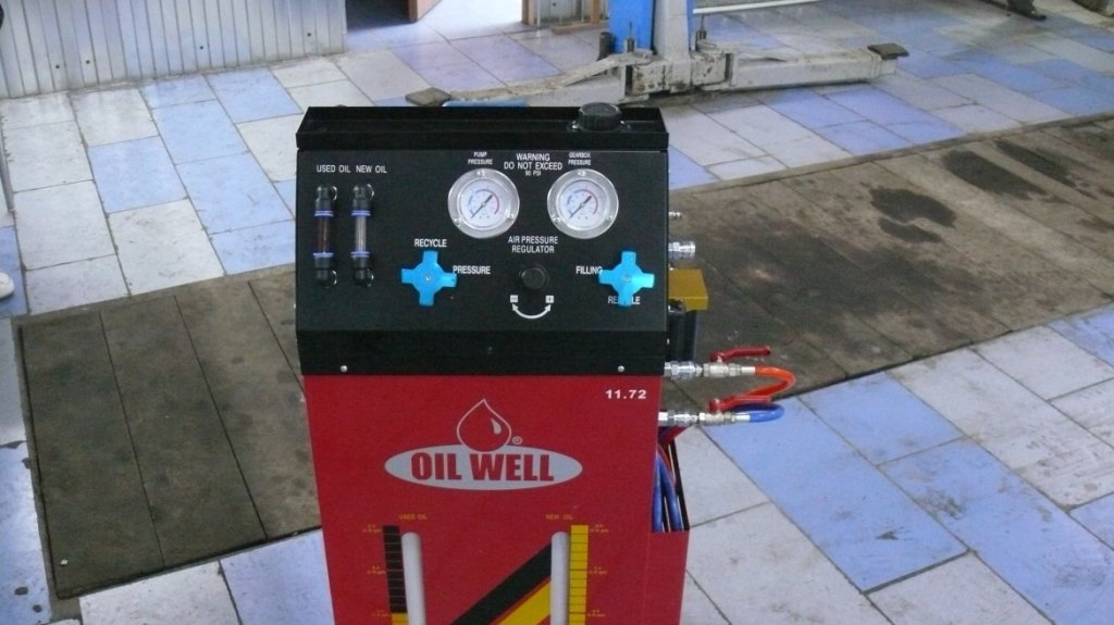 При полной смене старая ATF практически полностью меняется новой. Полная смена базируется на принципе, что у любой автоматической коробки имеется система охлаждения, выходящая за её пределы. Это своего рода магистраль, по которой непрерывно во время работы циркулирует смазка. Именно в данную цепь нужно подключать аппарат для того, чтобы промыть АКПП и заменить в ней смазку. Устройство, подключенное к цепи охлаждения, одновременно принимает отработанную жидкость и закачивает новую.